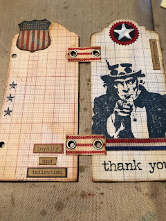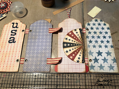 Today I am sharing an americana accordion album I created from chipboard tags. I used two sets of large chipboard tags from Gypsy Soul Laser Cuts. I love the weight of these tags, they are sturdy enough to withstand a lot of mediums yet they can be easily pierced. This is important since I am using eyelets to hold my binding pieces in place.