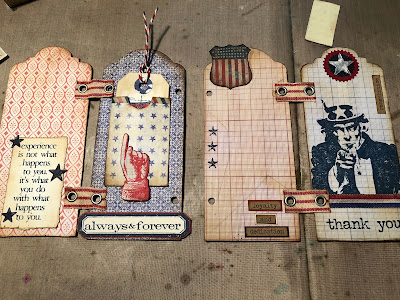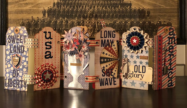 I have really enjoyed creating this americana accordion album for Mini Album Makers Challenge blog. As all of the patriotic elements came together I was constantly reminded of and humbled by the servicemen and women who are always working to keep our beautiful country safe and our liberties and freedoms intact. My album is a tribute to all of those who serve or have served. I come from a very long line of patriots and have always had a huge amount of respect and gratitude for the dedication and loyalty of these fine souls.
