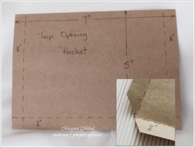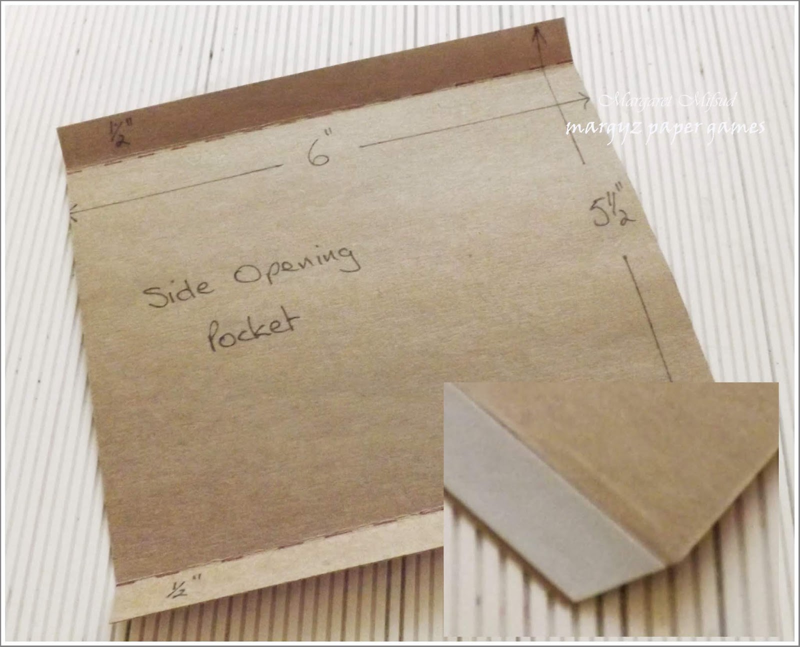 When attaching this pocket, only glue down the bottom and one side. The other side is left open to attach to the book hinge.